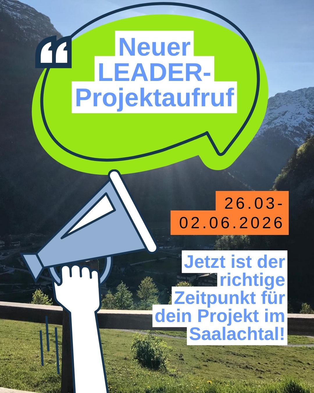 Ab sofort ist ein neuer Aufruf zur Einreichung von Projekten für das Saalachtal auf der Digitalen Förderplattform der AMA geöffnet: Link .